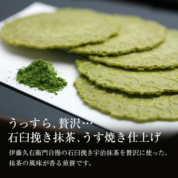 【抹茶煎餅】用途:【お土産 パーティー】【お土産 同窓会】【快気祝い】【記念日】におすすめです 伊藤久右衛門の抹茶スイーツはさまざまなシーンのギフトとしても最適です【季節の贈り物に】父の日・母の日・敬老の日・御中元・敬老の日・クリスマス・冬ギフト・お歳暮・御歳暮・お年賀・お正月・年末年始・バレンタイン・ホワイトデー お返し【日々の心づかい、ちょっとした手みやげに】御祝・御礼・御挨拶・粗品・お使い物・贈答品・ギフト・プレゼント・お土産・手土産・贈りもの・進物・お返し【お祝いや内祝いなど祝儀の品に】引き出物・お祝い・内祝い・結婚祝い・結婚内祝い・出産祝い・出産内祝い・引き菓子・快気祝い・快気内祝い・プチギフト・結婚引出物・七五三・進学内祝・入学内祝※仏事用商品はお使いいただけません。